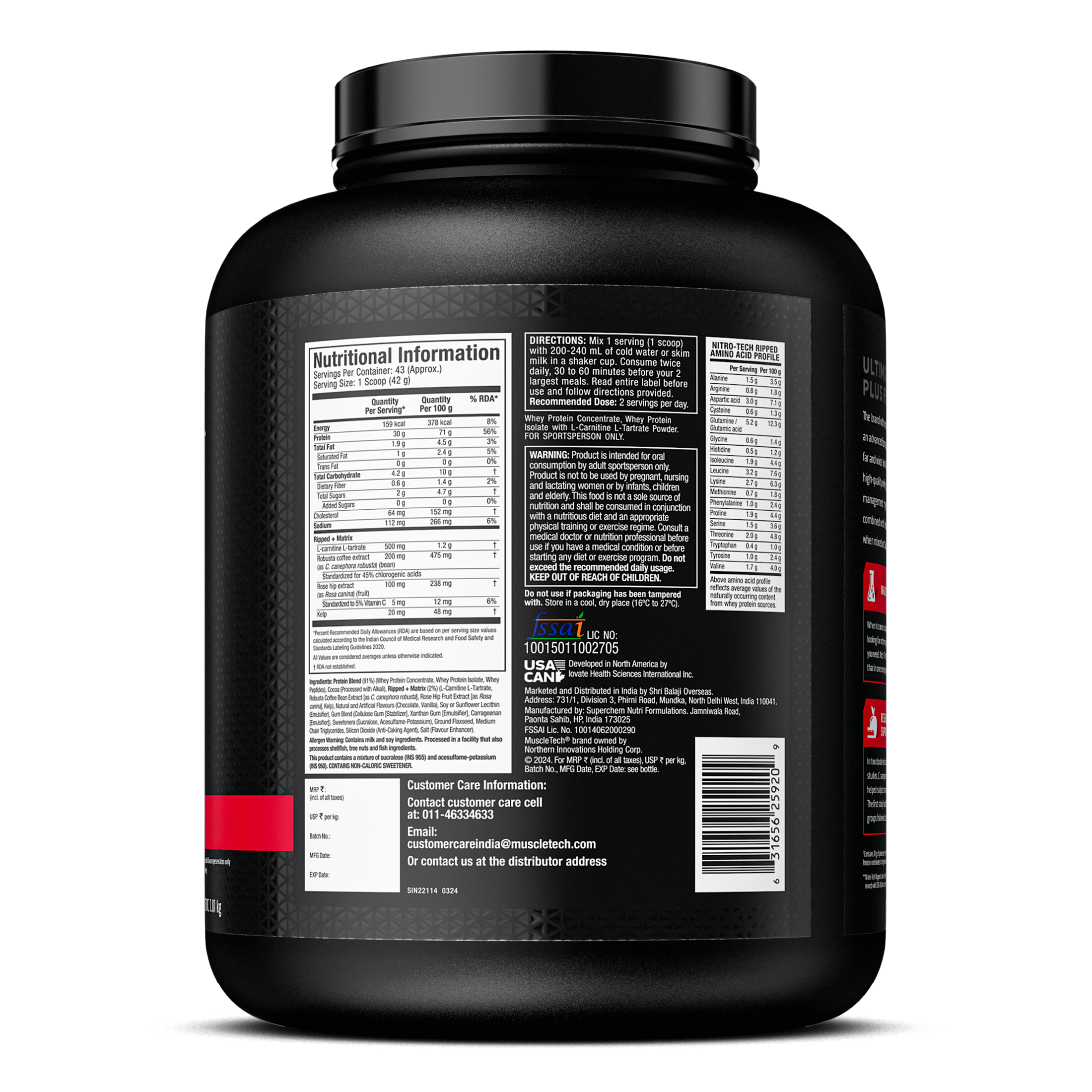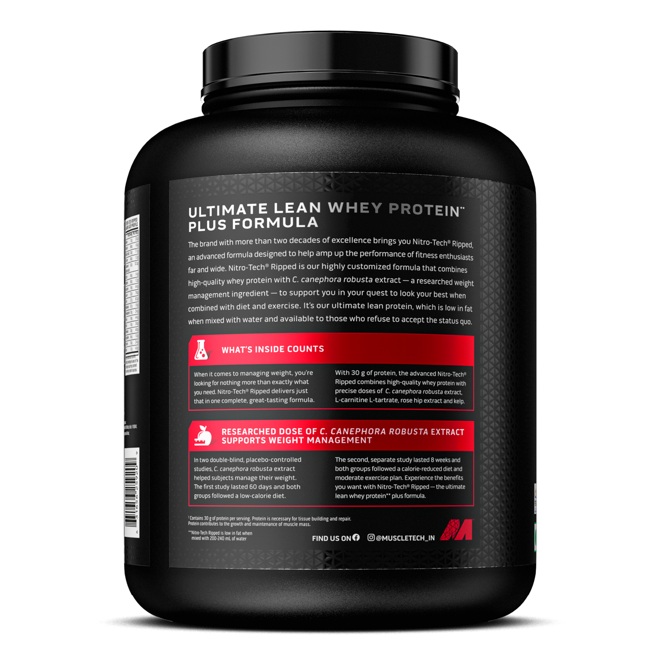 - High on Whey Protein: MuscleTech Nitro-Tech Ripped provides you with lean muscle building 30g of premium whey protein, primarily from whey protein peptides and whey protein isolate.